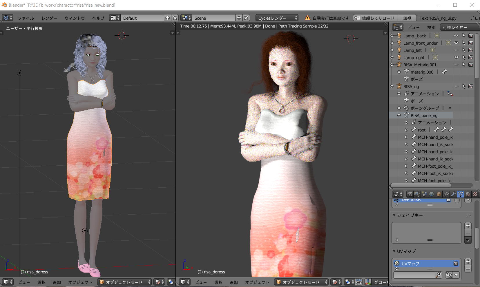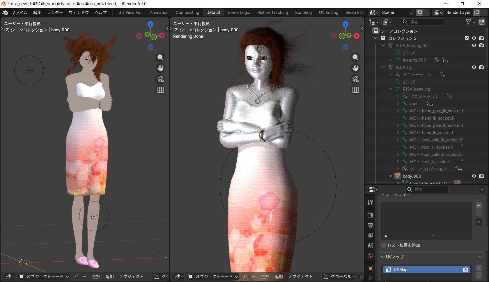 bodyマテリアル情報の読み込み。表示が少し異なる。