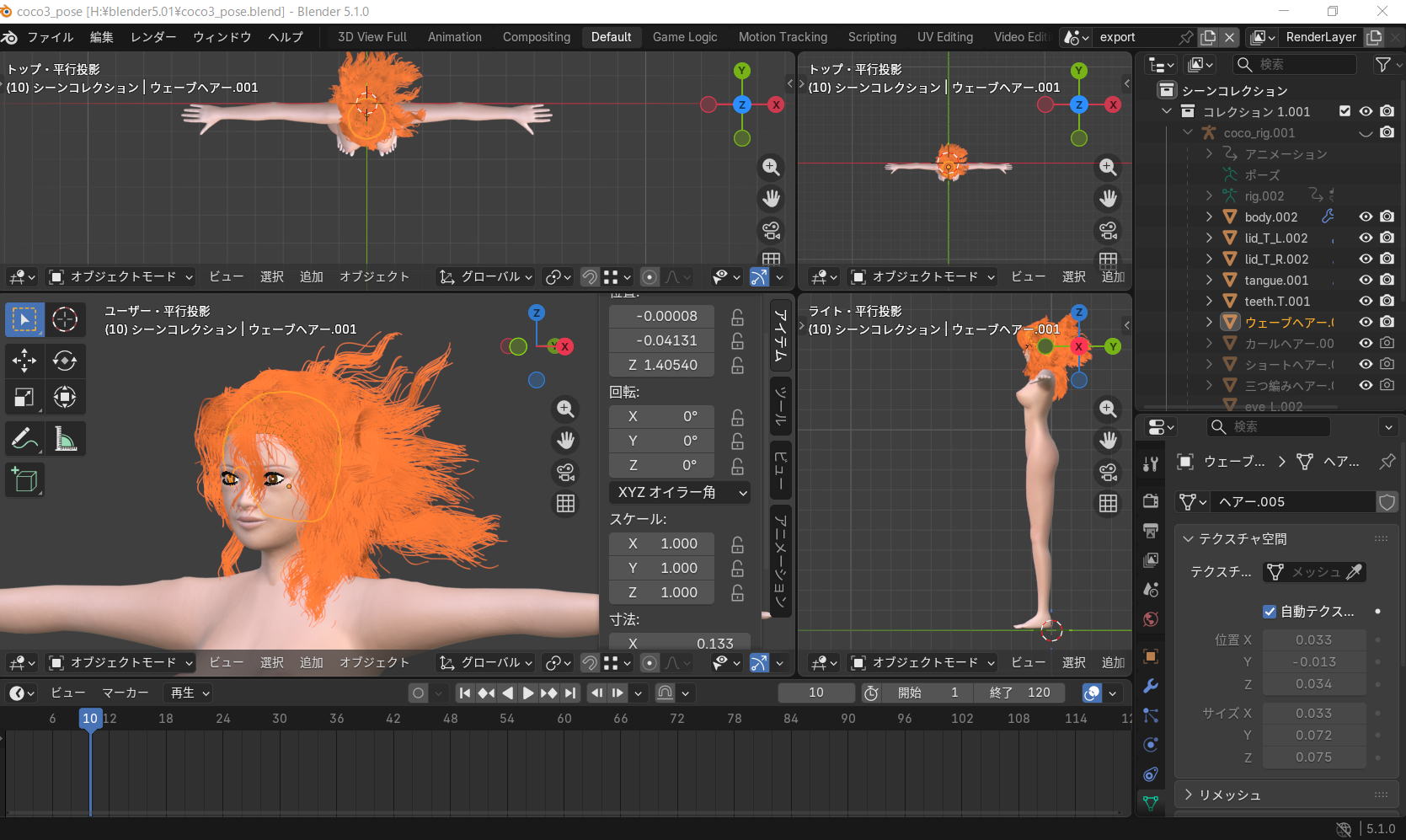 シーン cycle_render のウインドウでは、アウトライナーで、メッシュデータ部分的に、