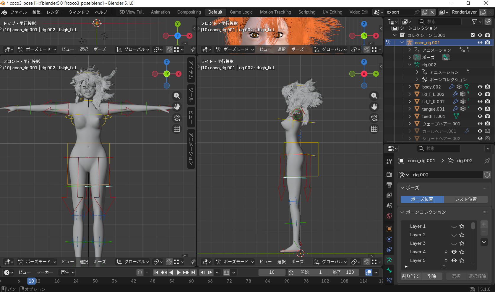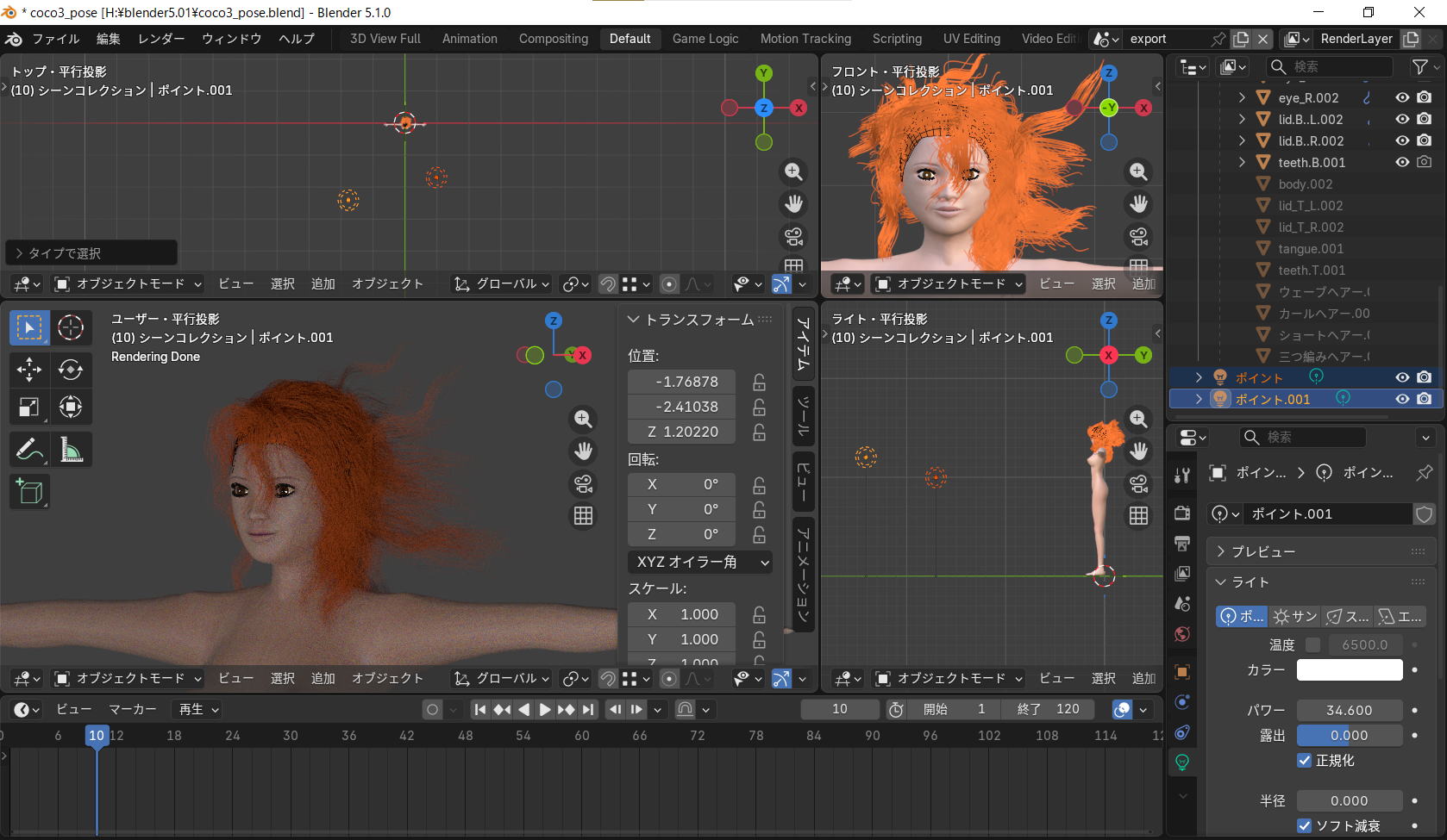 レンダリングしてみる  ライト設定なしで暗い  ライト・ポイントを2個 追加